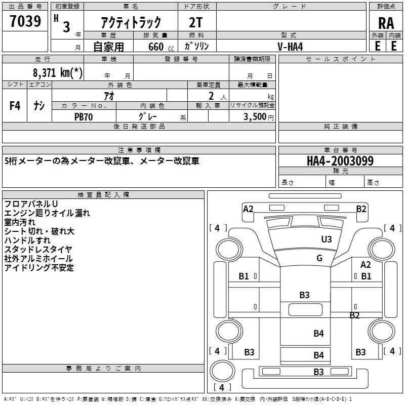 HONDA ACTY TRUCK - лот 7039