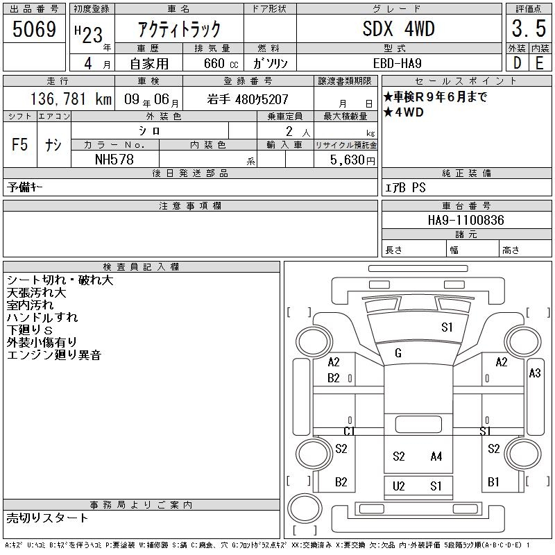 HONDA ACTY TRUCK - лот 5069