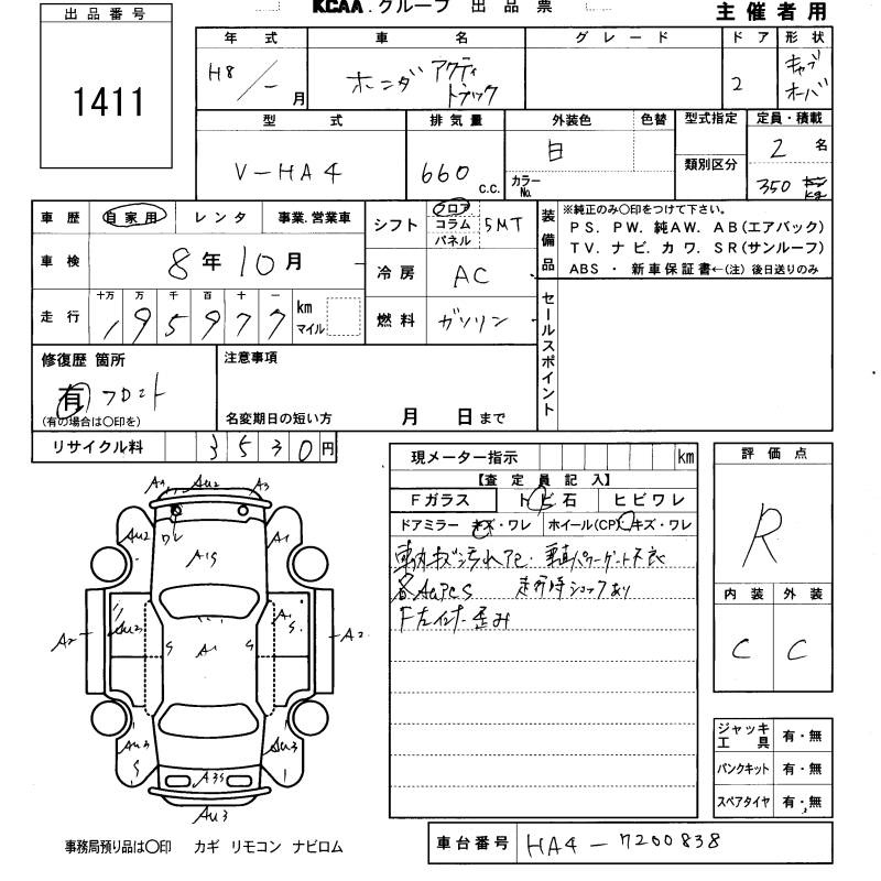 HONDA ACTY TRUCK - лот 1411