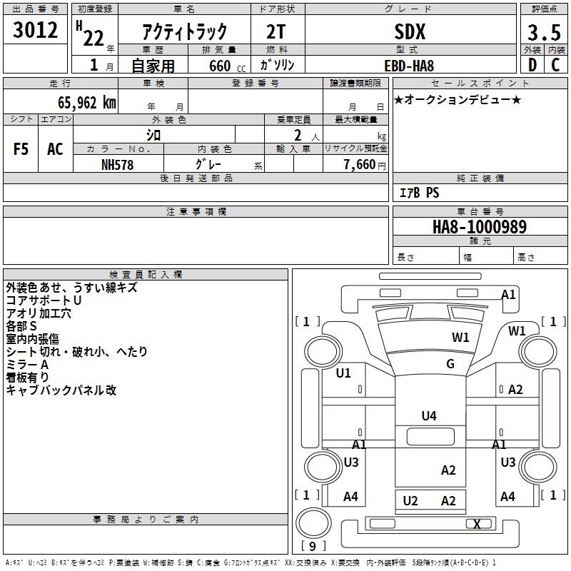 HONDA ACTY TRUCK - лот 3012