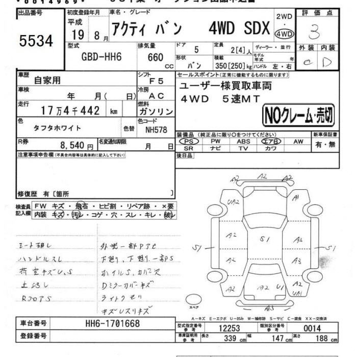 Все аукционы HONDA ACTY VAN