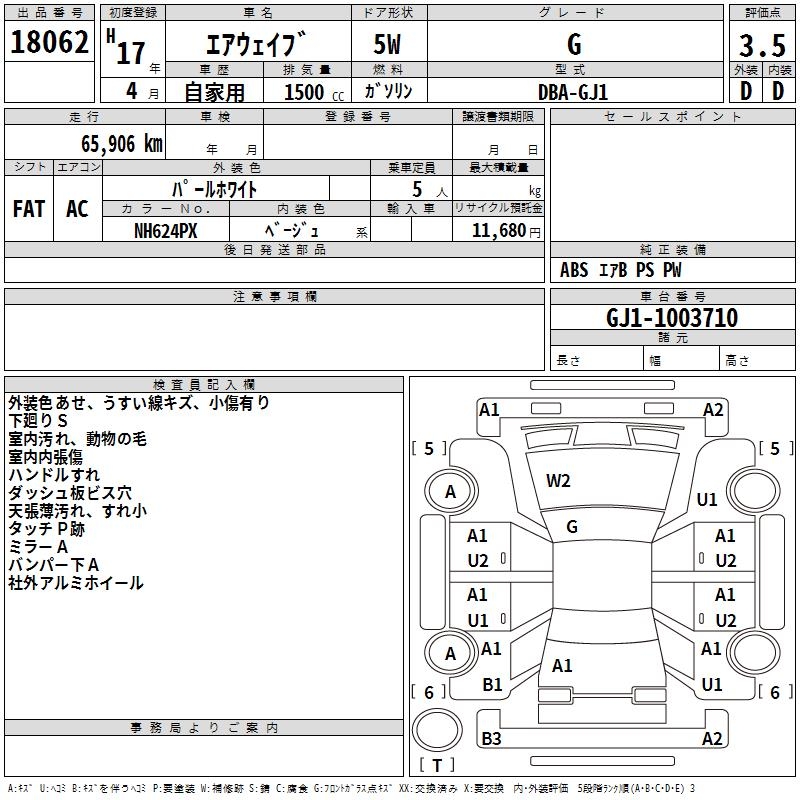 HONDA AIRWAVE - лот 18062