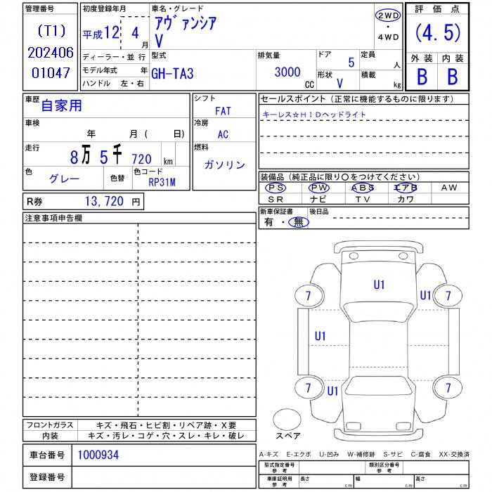 HONDA AVANCIER - лот 26151