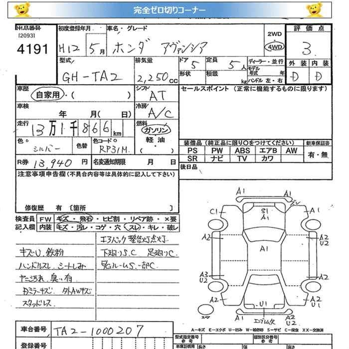 HONDA AVANCIER - лот 4191