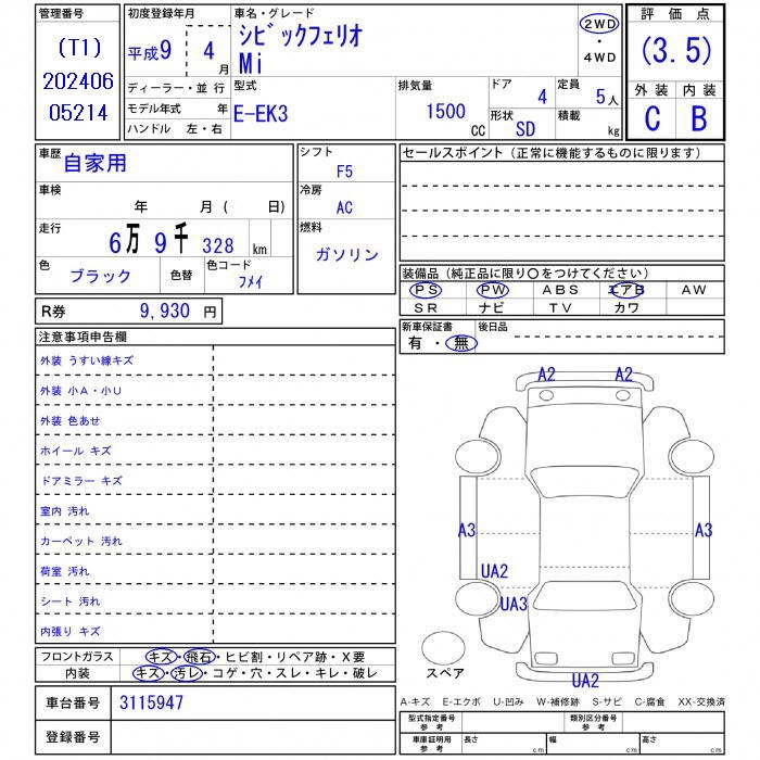 Все аукционы HONDA CIVIC FERIO