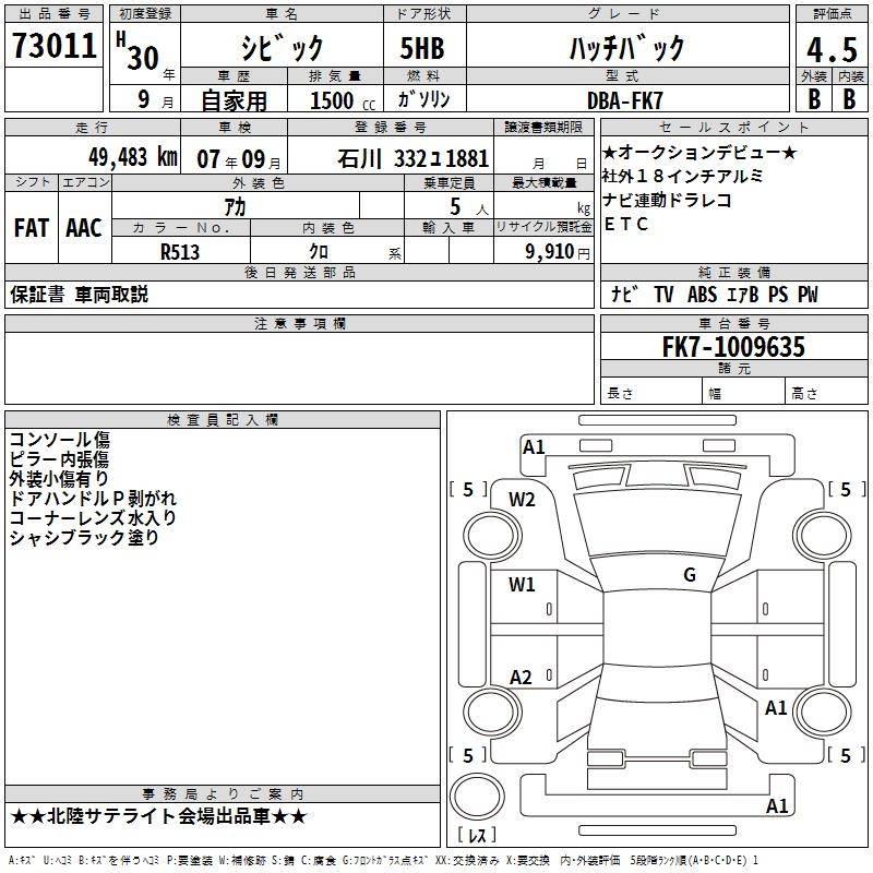 HONDA CIVIC HATCHBACK - лот 73011