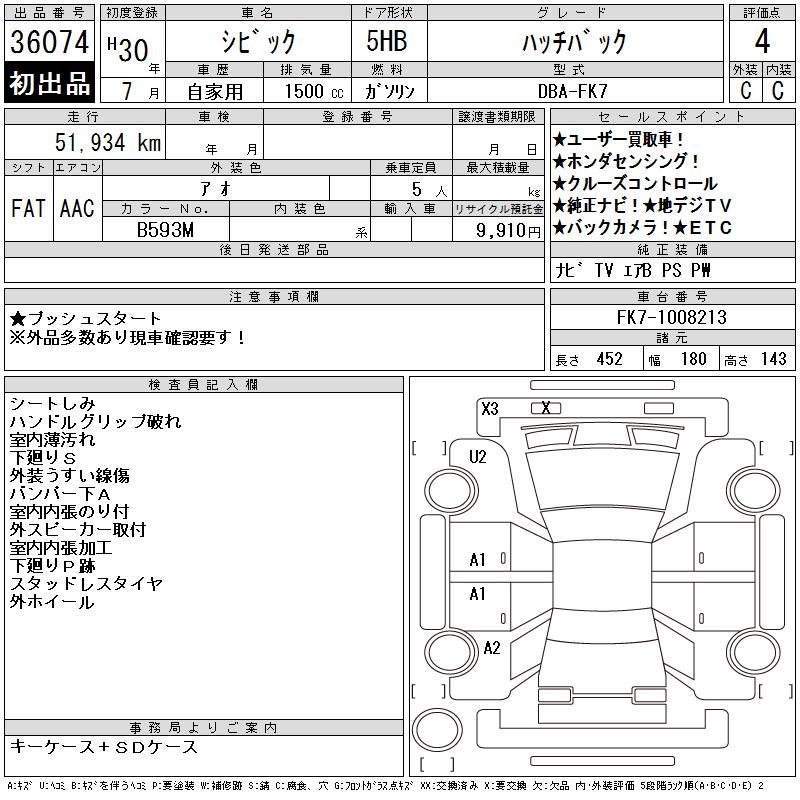 HONDA CIVIC HATCHBACK - лот 36074