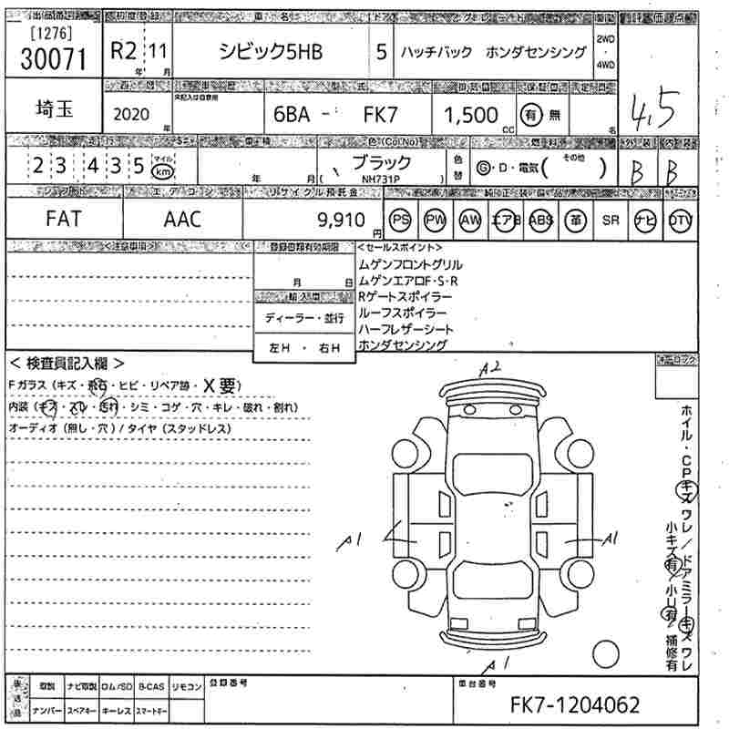 HONDA CIVIC HATCHBACK HONDA SENSING - лот 30071