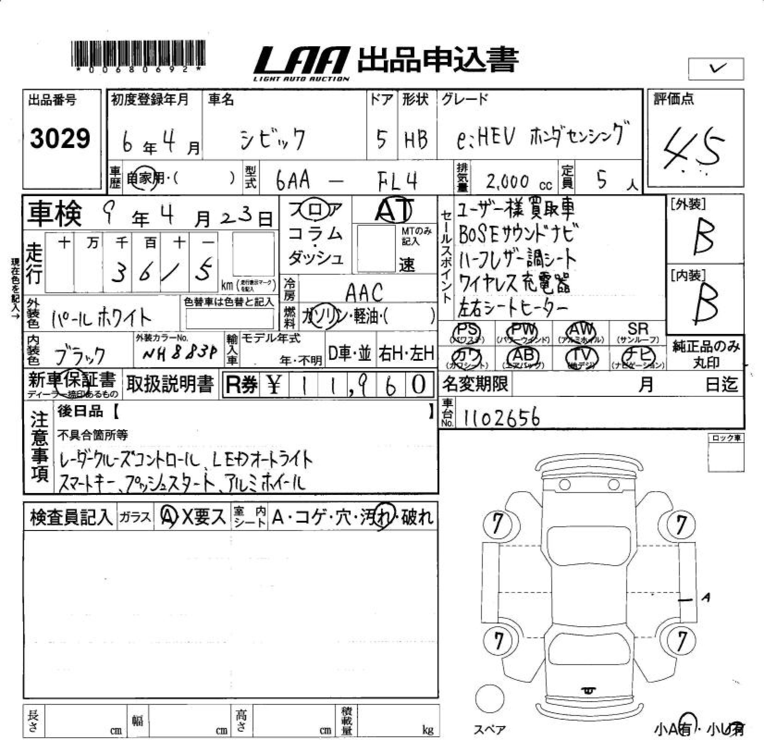 HONDA CIVIC E:HEV HONDA SENSING - лот 3029