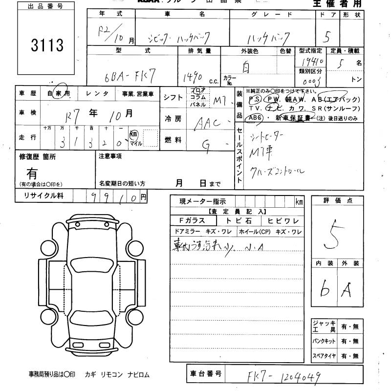 HONDA CIVIC HATCHBACK - лот 3113