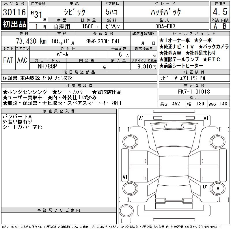 HONDA CIVIC HATCHBACK - лот 30116
