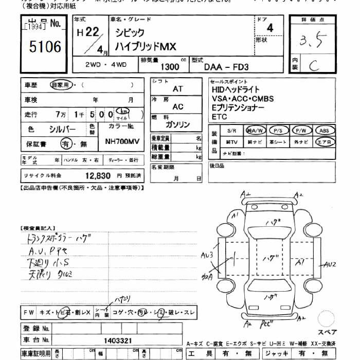 HONDA CIVIC HYBRID MX - лот 5106