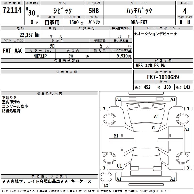 HONDA CIVIC HATCHBACK - лот 72114