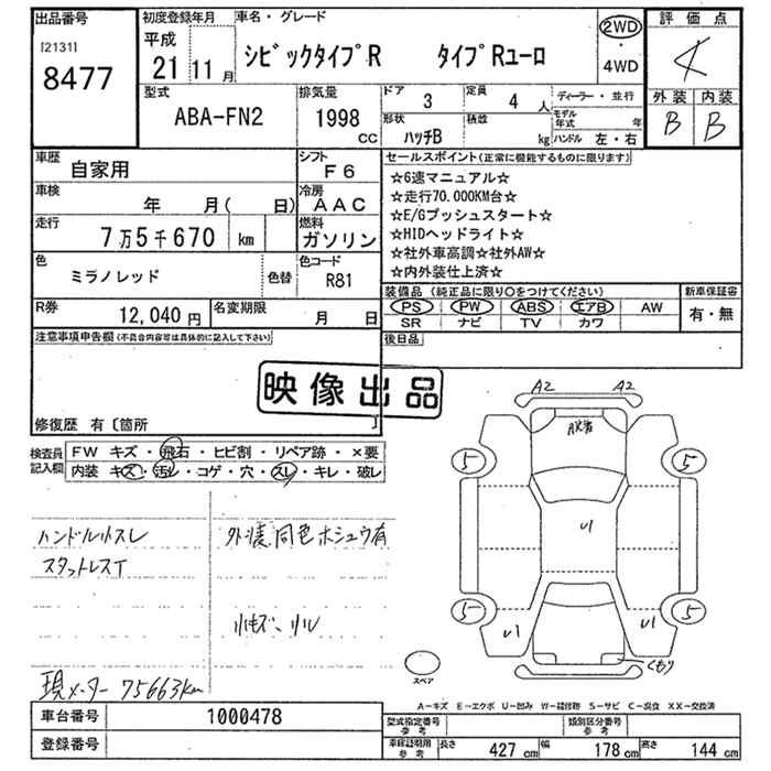 HONDA CIVIC TYPE R EURO - лот 8477