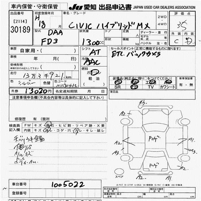HONDA CIVIC HYBRID ) MX - лот 30189