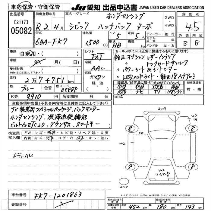 HONDA CIVIC HONDA SENSING TURBO - лот 5082