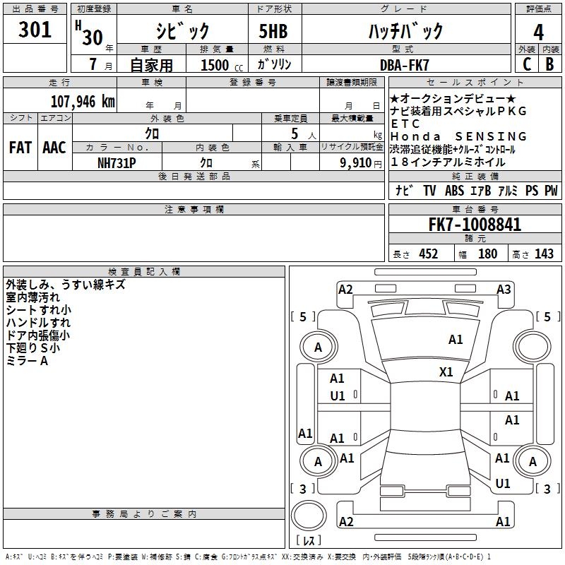 HONDA CIVIC HATCHBACK - лот 301