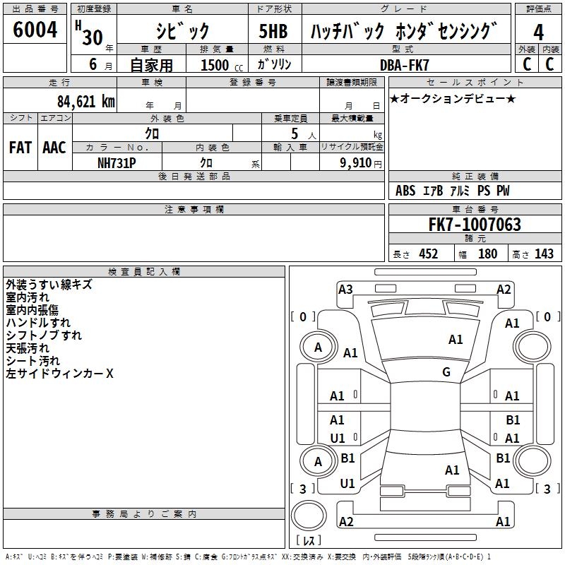 HONDA CIVIC HATCHBACK HONDA SENSING - лот 6004