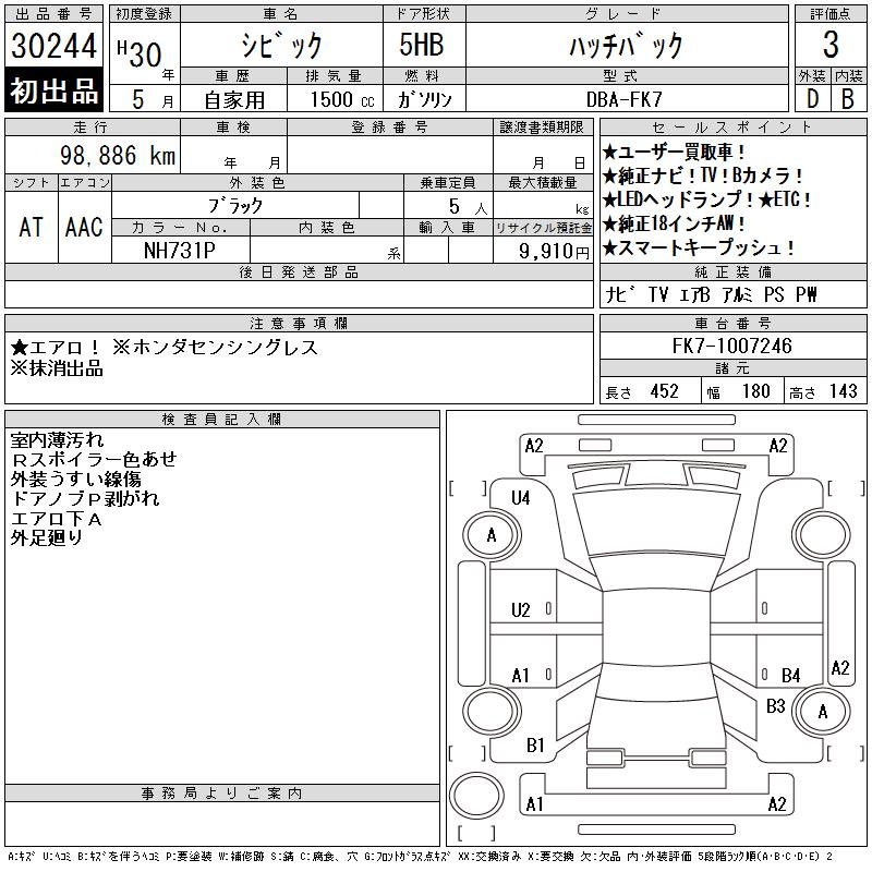 HONDA CIVIC HATCHBACK - лот 30244