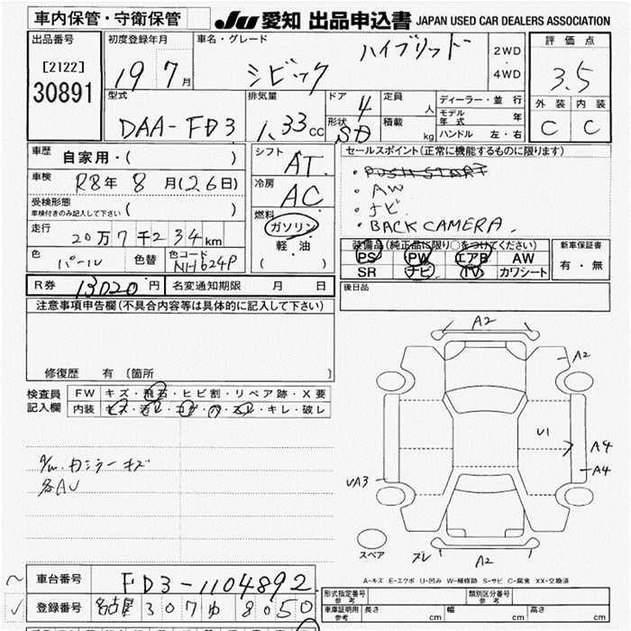 HONDA CIVIC HYBRID ) - лот 30891