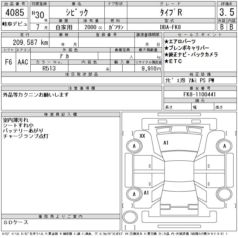 HONDA CIVIC TYPE R - лот 4085