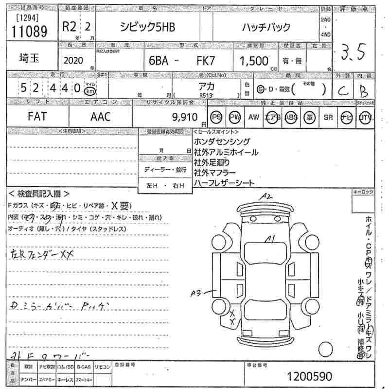 HONDA CIVIC HATCHBACK - лот 11089