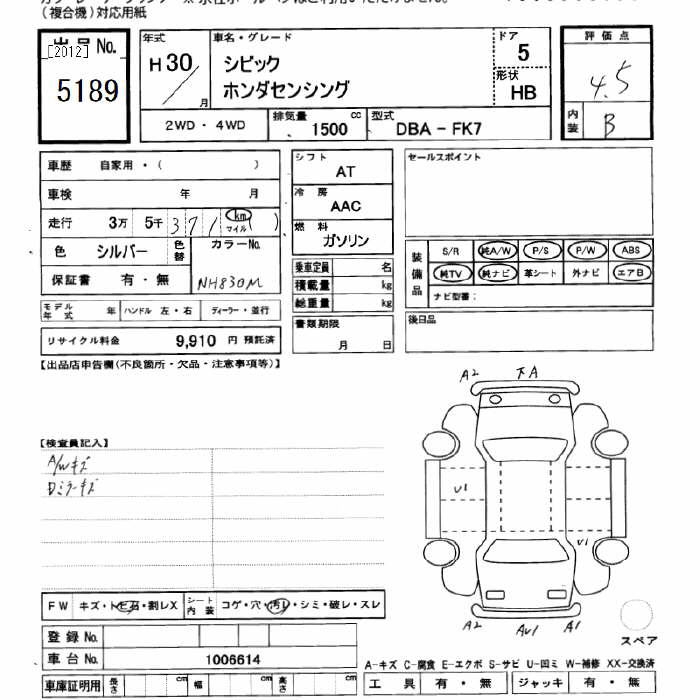 HONDA CIVIC HONDA SENSING - лот 5189