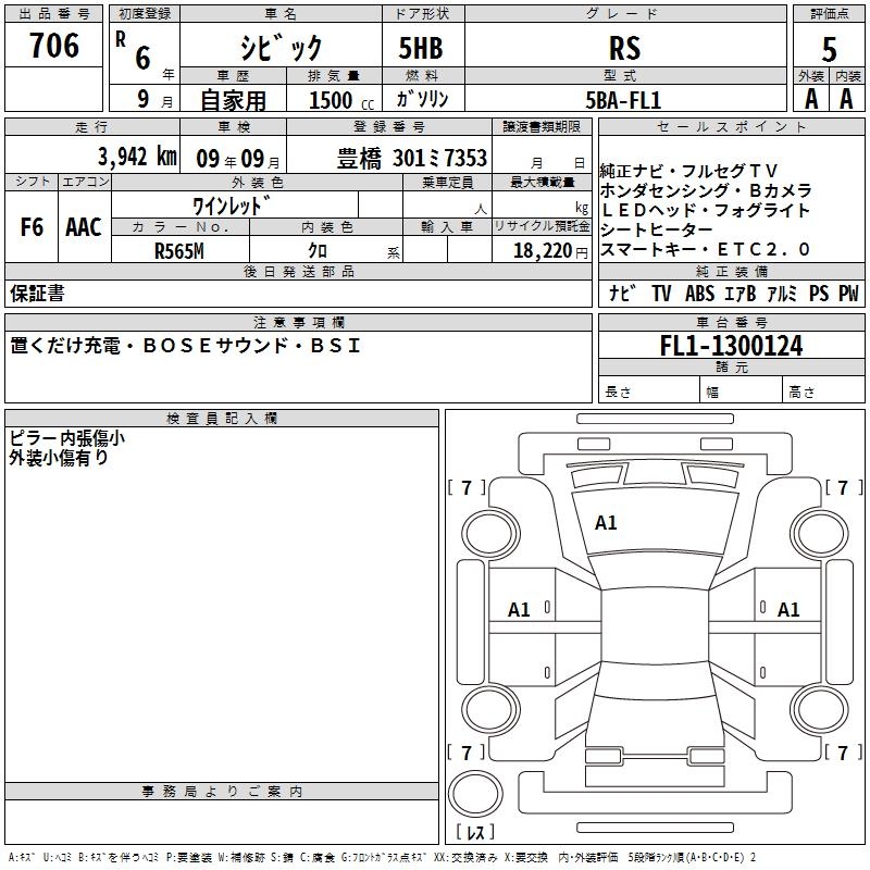HONDA CIVIC RS - лот 706