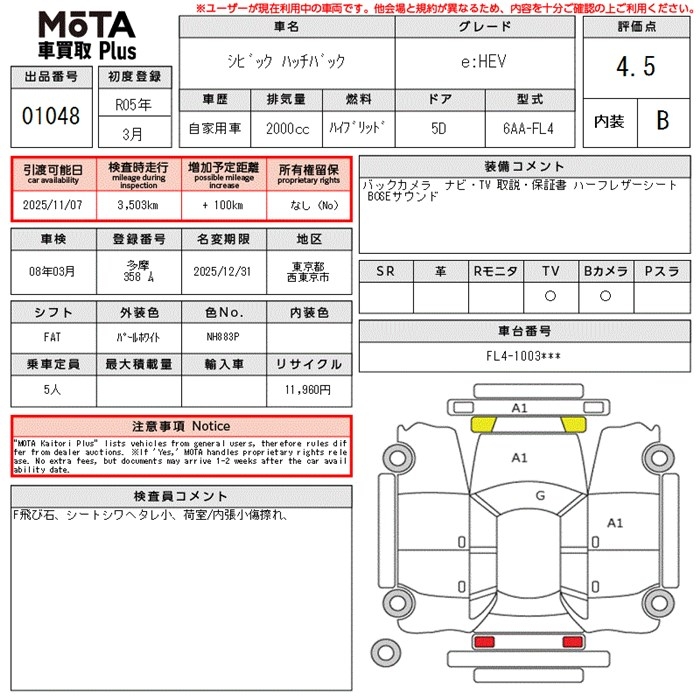 HONDA CIVIC e:HEV - лот 1048