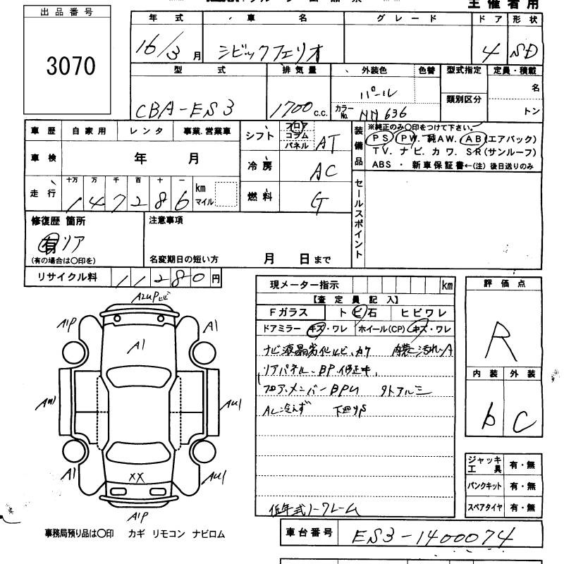 HONDA CIVIC FERIO - лот 3070