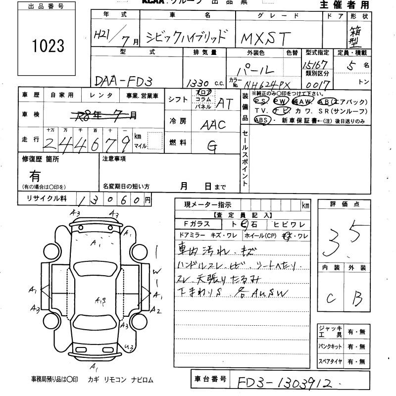 Все аукционы HONDA CIVIC HYBRID