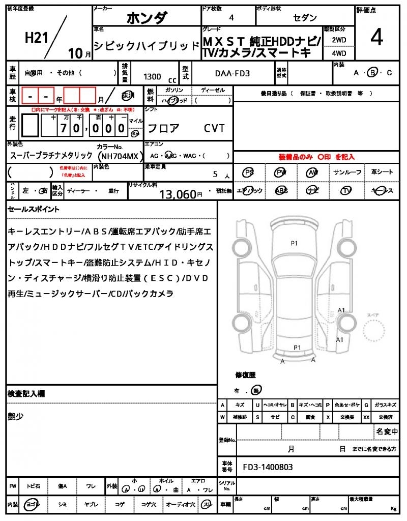 Статистика продаж HONDA CIVIC HYBRID с аукционов Японии