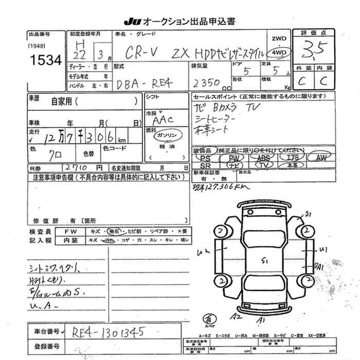 HONDA CR-V 4WD ZX HDD NAVIGATION LEATHER STYLE - лот 1534