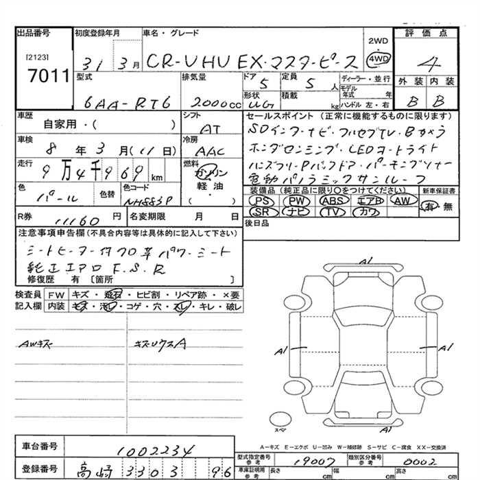 Оборудование: PS PW ABS подушка безопасности AW SR навигация TV кожа 4WD расстояние 94,969km