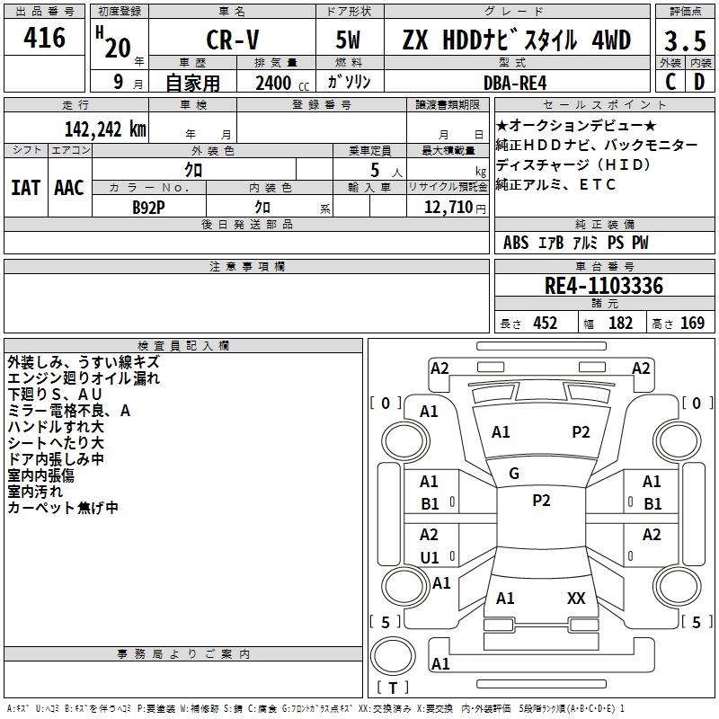 HONDA CR-V ZX HDD NAVI STYLE 4WD - лот 416