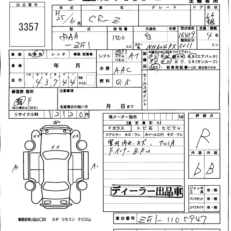 HONDA CR-Z - лот 3357