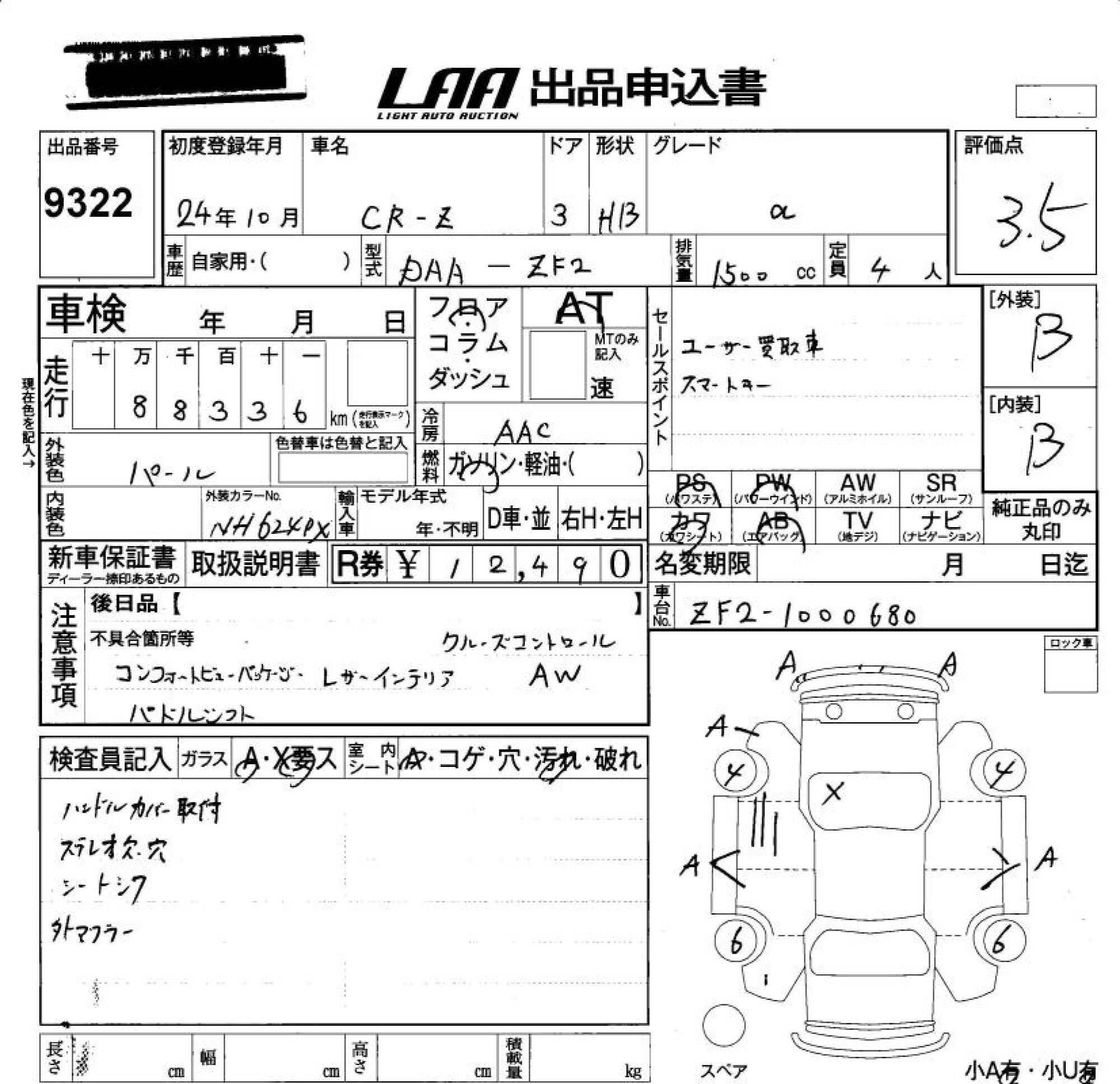 HONDA CR-Z - лот 9322