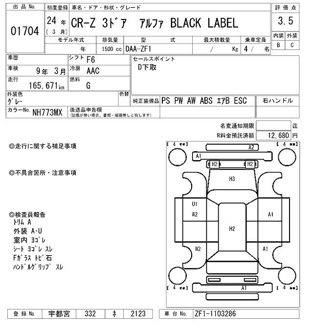 HONDA CR-Z - лот 1704