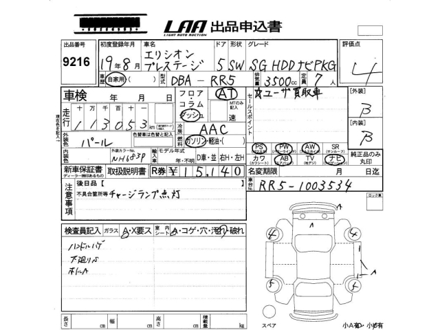 HONDA ELYSION PRESTIGE SG HDD комплектация навигацией - лот 9216