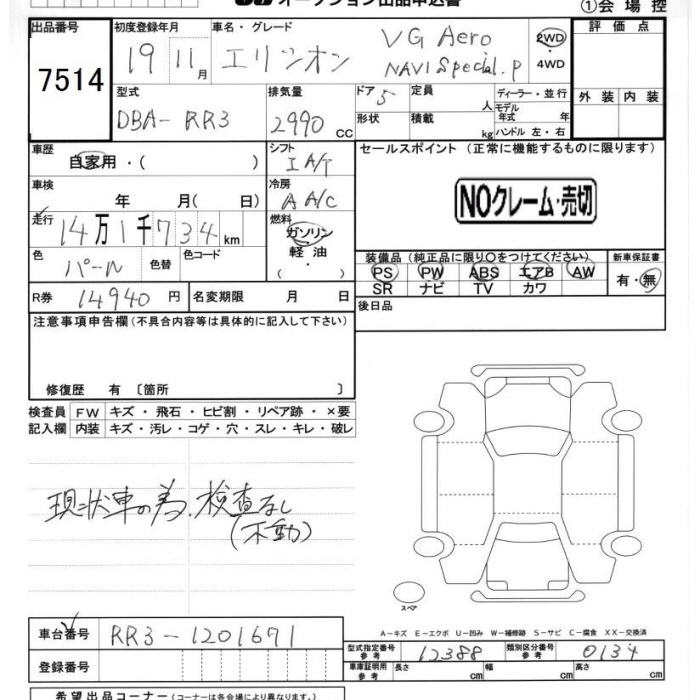 HONDA ELYSION VG aero навигация специальный package - лот 7514