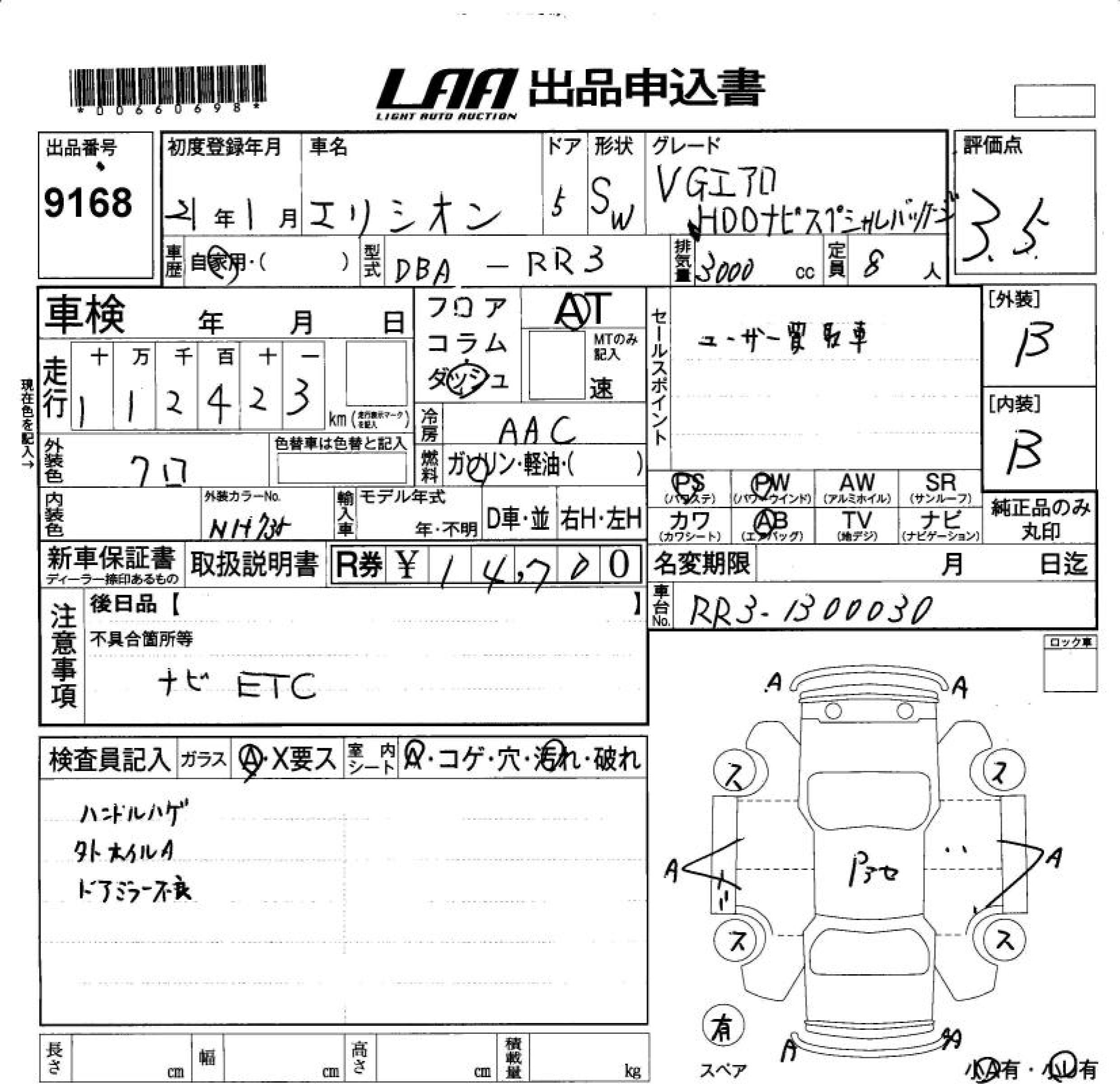 HONDA ELYSION VG AERO HDD NAVIGATION SPECIAL - лот 9168