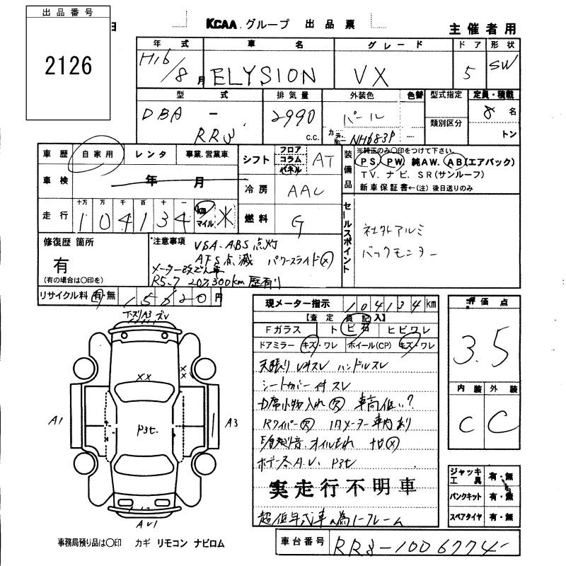 HONDA ELYSION VX - лот 2126