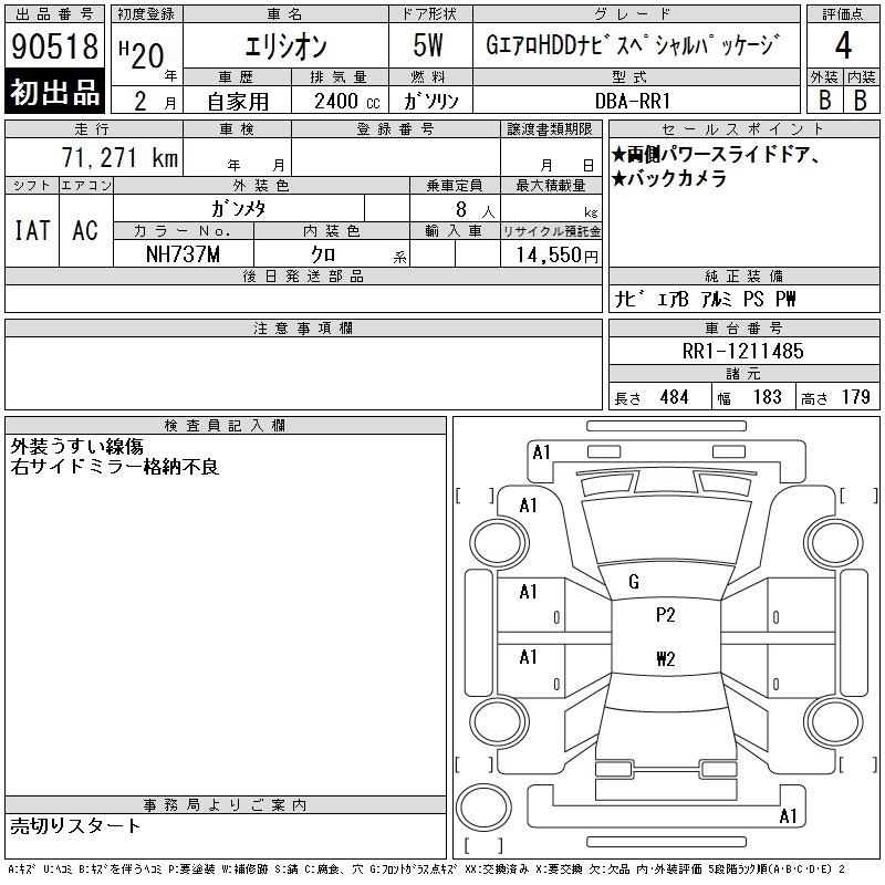 HONDA ELYSION G AERO HDD NAVIGATION SPECIAL PACK - лот 90518