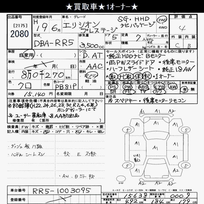 HONDA ELYSION PRESTIGE SG HDD NAVIGATION PACKAGE 7 PERSON - лот 2080