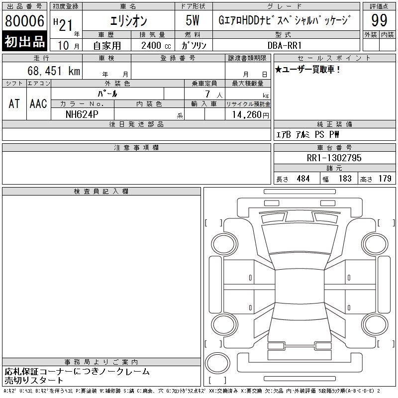 HONDA ELYSION G AERO HDD NAVIGATION SPECIAL PACK - лот 80006