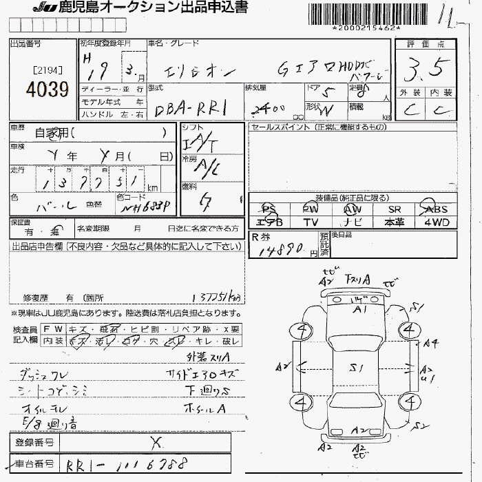 Все аукционы HONDA ELYSION