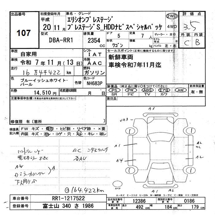 HONDA ELYSION PRESTIGE S HDD NAVIGATION SPL PACKAGE - лот 107