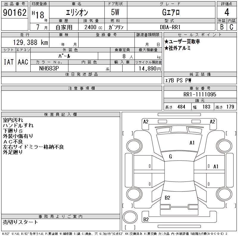 HONDA ELYSION G AERO - лот 90162