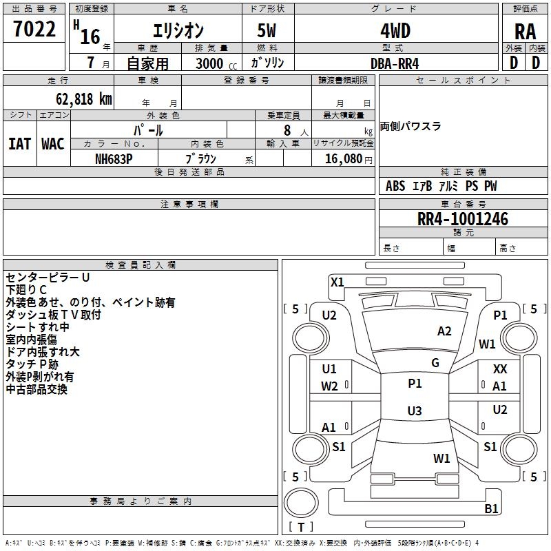HONDA ELYSION 4WD - лот 7022