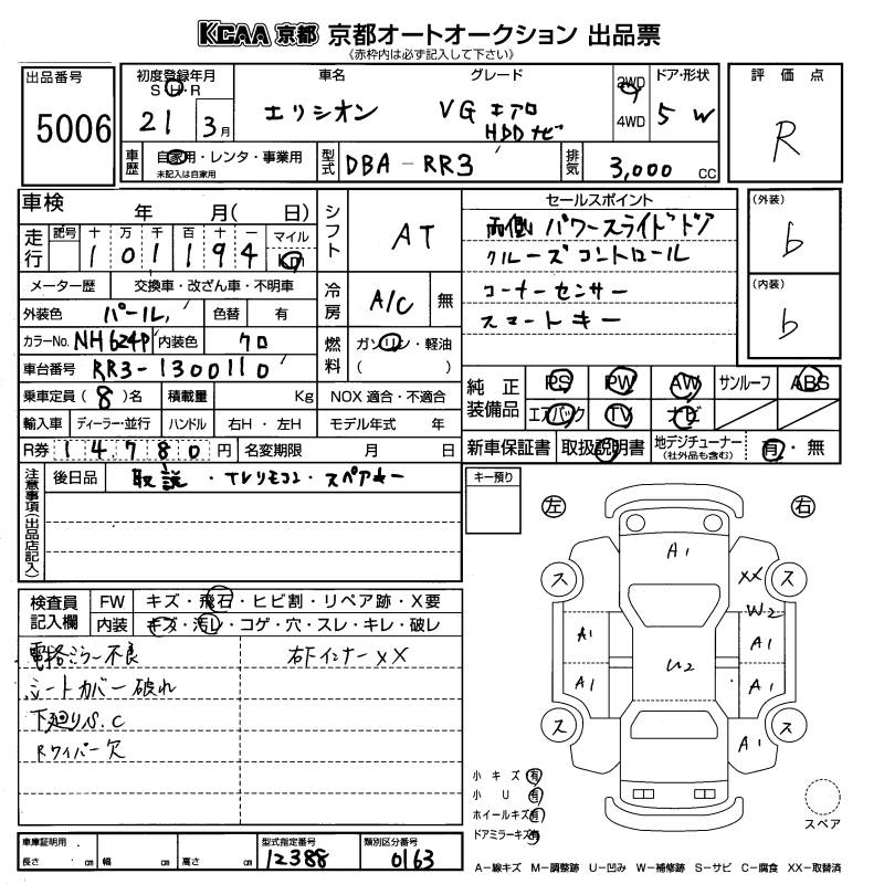 HONDA ELYSION VG AERO HDD NAVIGATION PACKAGE - лот 5006